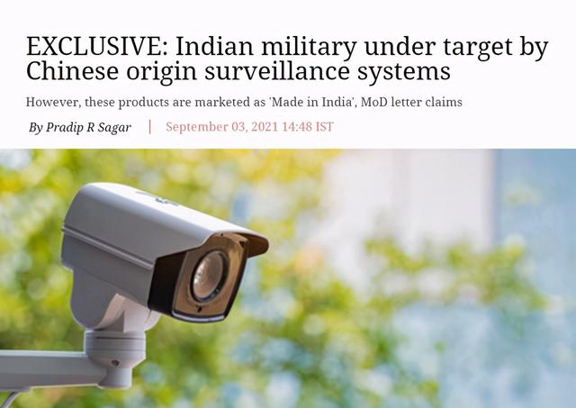 根据《周刊报道》杂志获得的印度国防部内部交流文件,监控摄像头市场的领导者之一是中国的海康威视数字科技公司(Hikvision)。印度国防部在信中声称,这些监控系统的组件是由中国公司提供的,然而这些产品却打着“印度制造”的标签销售。据估计,海康威视在印度占有超过35%的市场份额。此外,据信该公司已经为德里地铁公司(DMRC)提供了合作方案,并获得了在德里安装15万台闭路电视摄像头的合同。此外,它还是印度巴拉特电子公司的供应商之一,该公司参与印度高度敏感和机密的国防项目。